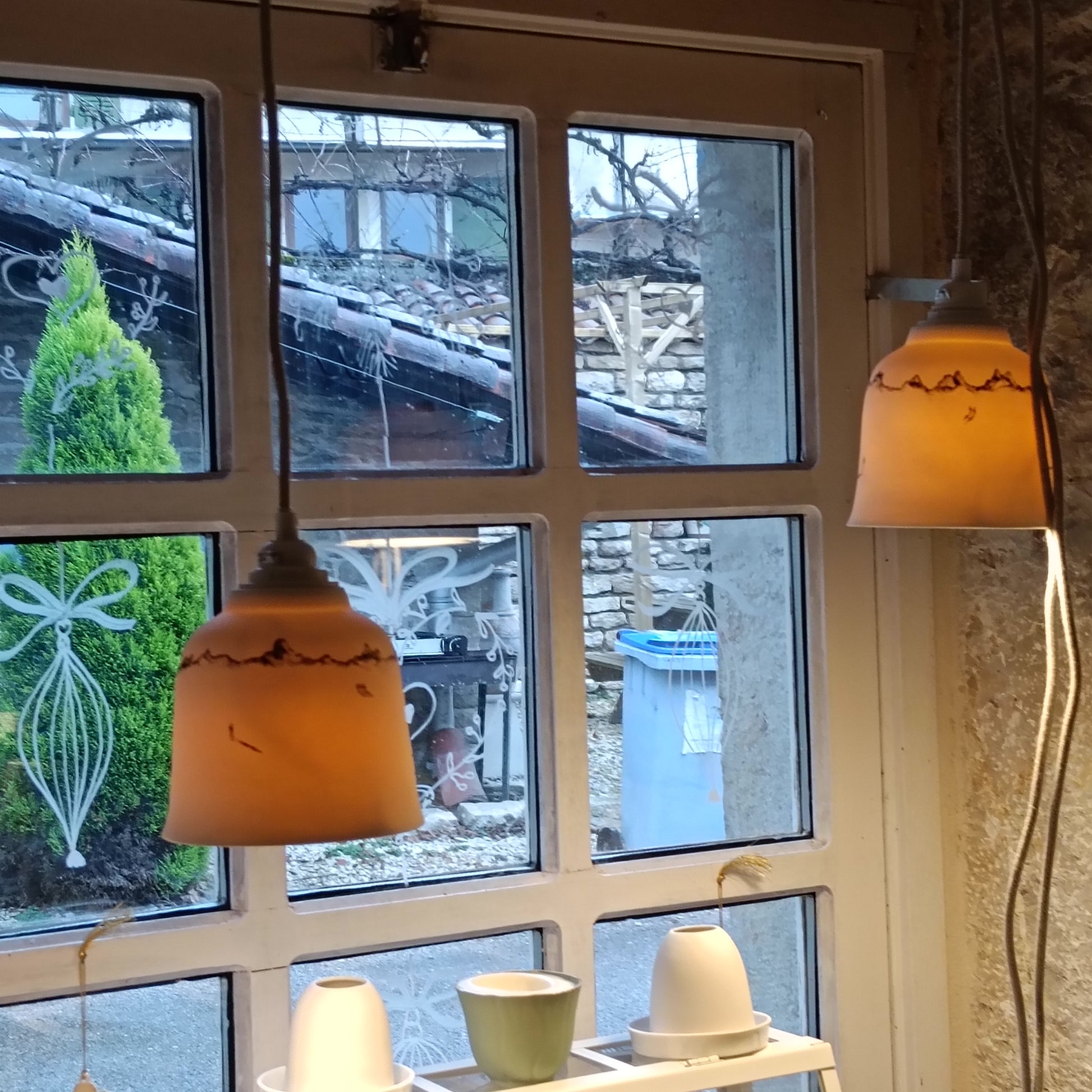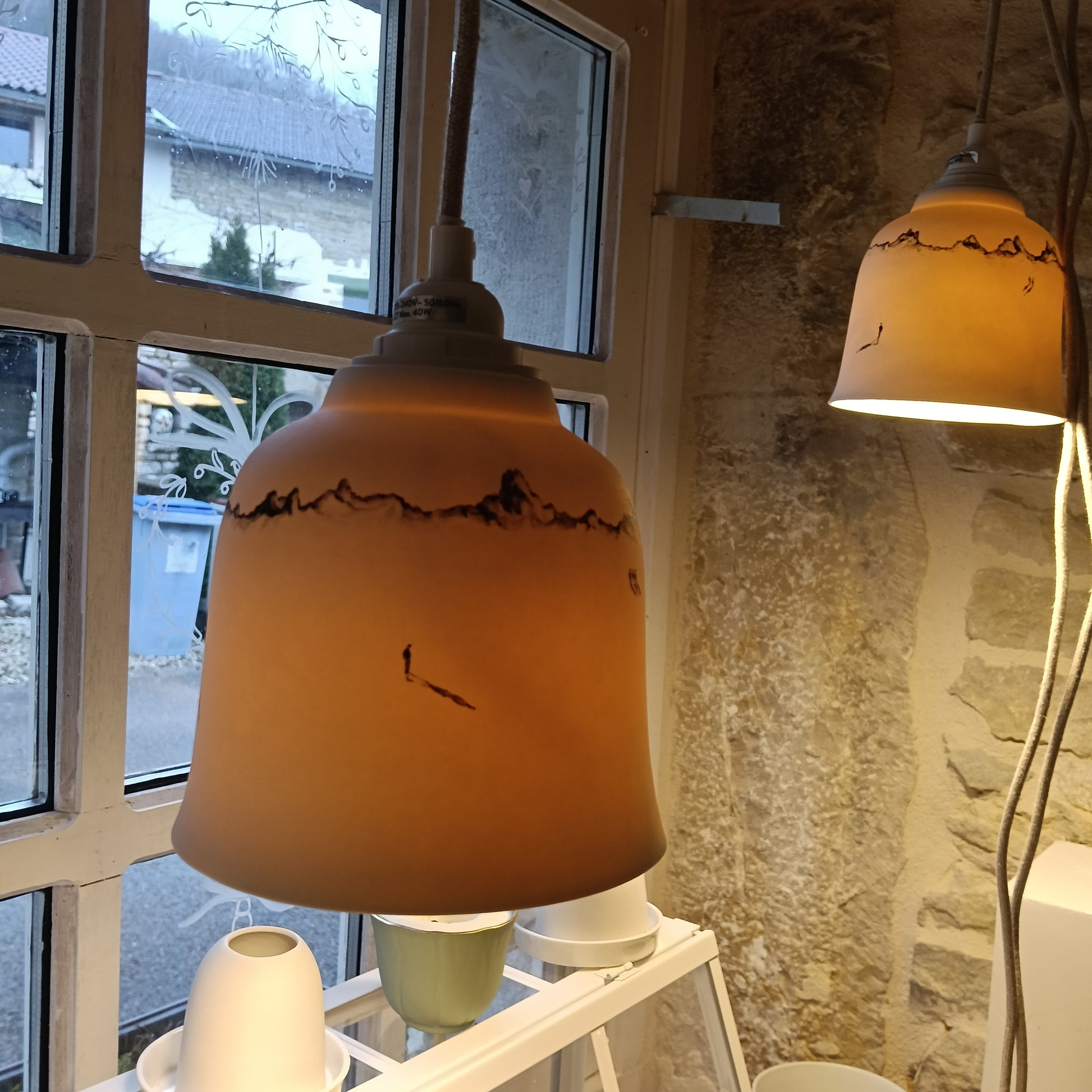 Suspension en Porcelaine, 14 cm de diamètre et 14 cm de hauteur.